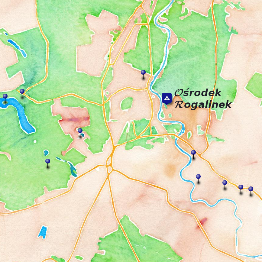 Lokalizacja Rogalinka jest wyjątkowa dzięki sąsiedztwu rzeki Warta, która jest doskonałym szlakiem wodnym wykorzystywanym przez nas podczas spływów kajakowych. Co prawda najbliższe jeziora znajdują się w odległości kilku kilometrów od obozowiska, to stanowią regionalne centrum sportów wodnych. Swoją działalność prowadzi tu między innymi Mosiński Klub Żeglarski, który oferuje również profesjonalne szkolenia z zakresu żeglugi małymi łodziami żaglowymi.